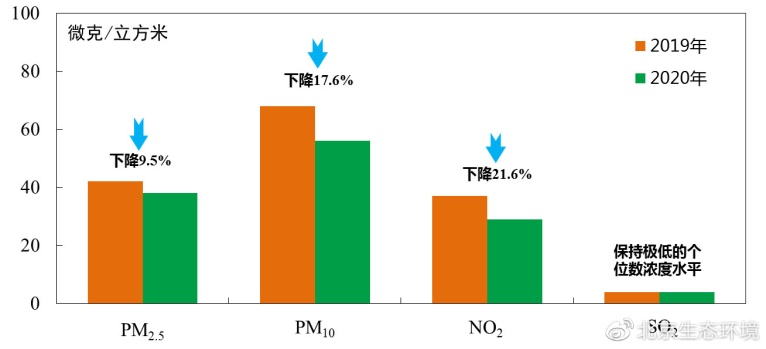 2020年北京市PM2.5年均濃度38微克/立方米為有監(jiān)測(cè)記錄以來最優(yōu)