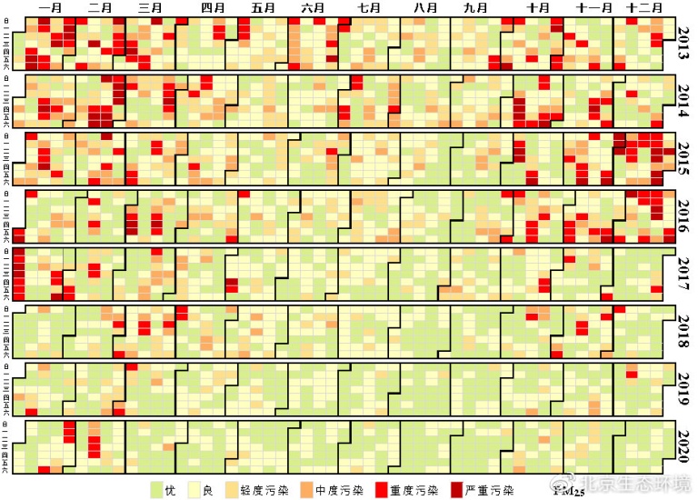 (圖9 2013-2020年PM2.5級(jí)別日歷圖)